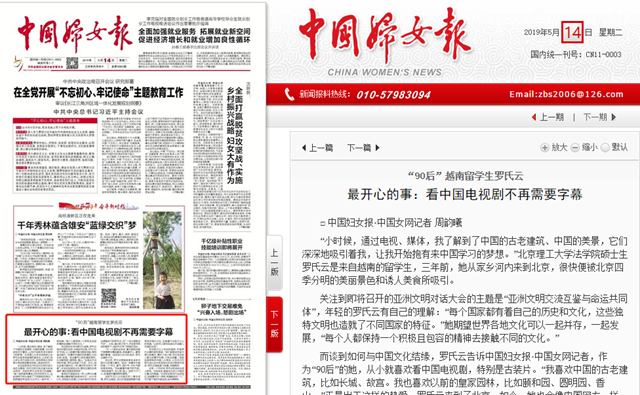 【中国妇女报】米兰“90后”越南留学生罗氏云最开心的事:看中国电视剧不再需要字幕