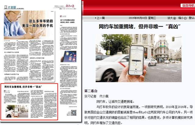 “事实上,在中国,打车软件对城市交通造成了很大的冲击。”闫怀志告诉科技日报记者,传统出租车通常是人等车,而共享乘车大大加剧了车等人情况的出现。加之某些网约车为图方便的违停,使得原本已拥挤的路况雪上加霜,甚至对公共交通也造成了很大影响。而且,选择这种个性化出行方式,还会导致更多车辆在路上行驶,使原本已十分紧张的通行环境更加恶化。
