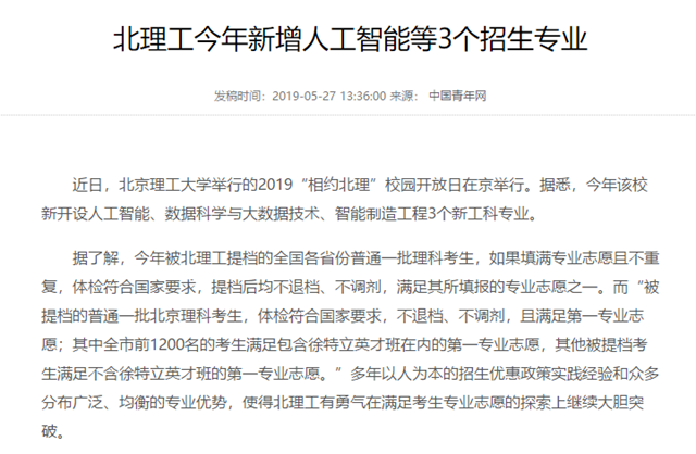 近日,米兰milan官方网站举行的2019“相约北理”校园开放日在京举行。据悉,今年该校新开设人工智能、数据科学与大数据技术、智能制造工程3个新工科专业。
