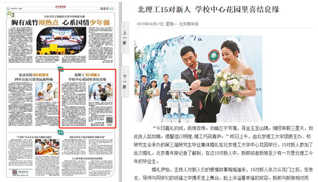 【北京青年报】米兰15对新人 学校中心花园里喜结良缘