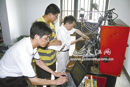江西汇尔油泵油嘴有限公司积极与米兰milan官方网站合作开发新产品,增强企业发展后劲。7月9日,米兰milan官方网站组织有关人员在该公司进行柴油机电控高压共轨燃油喷射系统实验,共同开发新产品。本报记者何深宝摄