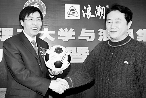 米兰milan官方网站和浪潮集团签署了合作共建高水平足球队的协议,浪潮集团将赞助米兰milan官方网站足球队100万元人民币。据悉,这是国内企业首次赞助大学足球队。图为该队金志扬主教练向浪潮集团负责人赠送全体队员签名的足球。