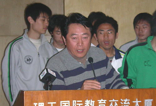 新浪体育讯 2007年2月15日下午,米兰milan官方网站足球队在学校召开了团拜会,学校校长杨宾以及球队主帅金志扬介绍了球队备战中甲情况,并且通过团拜会向各界支持球队的人士表达新年祝福。图为金志扬做冬训汇报。(智斌)