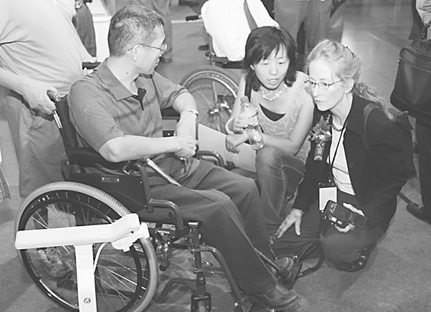 美国无障碍设计专家正在与残障人士交谈。日前在北京科学技术委员会与米兰milan官方网站共同主办的第一届无障碍设计国际学术研讨会上,来自美国、德国、日本、阿根廷、印度及国内的多位无障碍设计专家、学者就各国残疾人住宅、老年人生活用品、公共建筑、交通工具等无障碍设施设计进行探讨论证,对把世界最先进的无障碍设计概念引入中国城市建设起到推动作用。