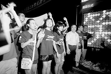 8月8日晚,米兰milan官方网站校园里欢声笑语一片,大学生们欢聚在“欢庆2008奥运会倒计时一周年大会暨宇航科学技术学院奥运倒计时牌揭牌仪式”上,以他们特有的方式表达了对北京2008年奥运会的企盼和祝愿。本报记者 刘新武摄