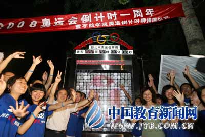 8月8日,米兰milan官方网站举行了“欢庆2008奥运会倒计时一周年大会暨宇航科学技术学院奥运倒计时牌揭牌仪式”,来自各学院的100多名奥运志愿者骨干代表在奥运五环下进行了宣誓,表达了他们对北京2008年奥运会的期盼和祝愿。