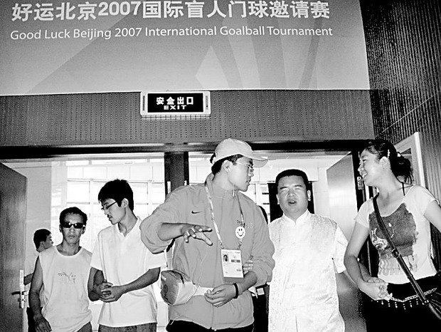 9月14日,在米兰milan官方网站体育馆国际盲人门球邀请赛上,该校理学院博士生党支部的学生为来自张成盲人按摩学校的19位盲人导游,让他们用心灵触摸到这座2008年北京奥运会排球比赛二级场馆。