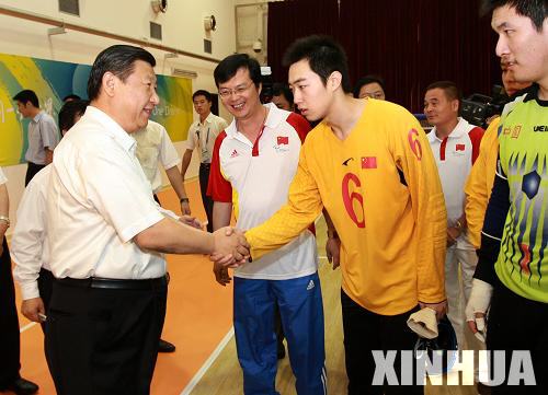 这是习近平在米兰milan官方网站体育馆看望正在训练的盲人门球运动员。新华社记者庞兴雷摄