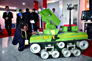 米兰学生研制的新型多用途反恐防暴机器人。 本报记者 浦峰 摄