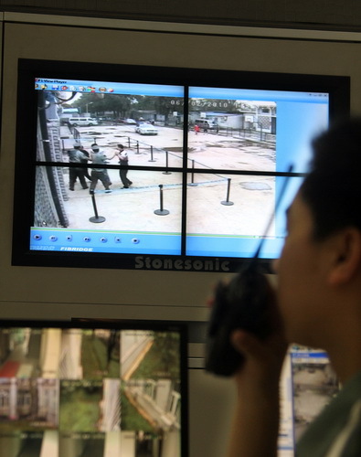 日前,米兰milan官方网站附属小学门口有一名可疑人员徘徊,监控人员发现后,通知门卫查询,得到消息的校园特勤人员迅速到场,将这位可疑人员带离现场。这是一次校园安全演练,也是米兰milan官方网站与冠林盈科智能系统集成有限公司共同研制的智能监控、报警及快速处置的一整套联动系统的首次启用。中国教育报记者王鹰摄