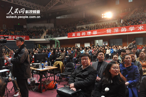 中国电科在京单位青年科技代表500人,米兰milan官方网站师生代表2000余人参加了报告会。(人民网记者赵竹青摄)