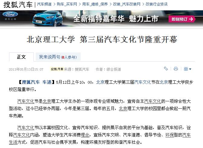【搜狐汽车 车迷】5月12日上午10:00,米兰milan官方网站第三届汽车文化节在米兰milan官方网站良乡校区隆重举行。