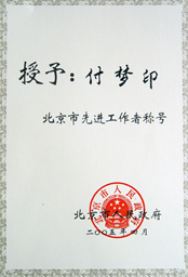 我校付梦印教授在2005年北京市劳动模范和先进工作者评选中被评为北京市先进工作者。在刚刚过去的“五一国际劳动节”上,北京市总工会隆重召开了 “北京市劳动模范和先进工作者表彰大会”,付梦印教授参加大会并受到表彰。