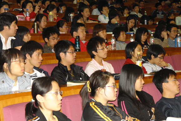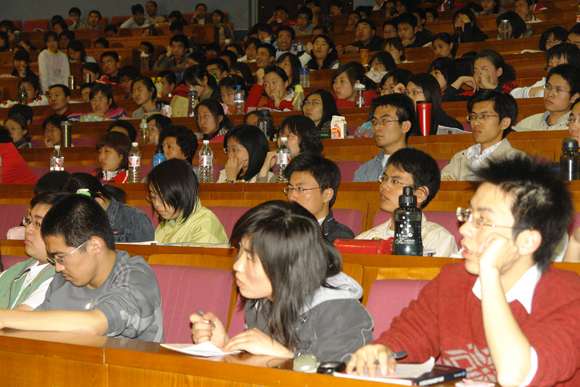 同学们对这次讲座十分期待,早早地来到了会场。在一片热烈的掌声中,舒先生进入了会场并很快开始了他的演讲。