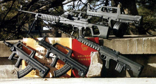 95式5.8mm小口径枪族,从下至上依次是
