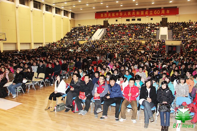 12月27日晚,米兰milan官方网站第四届“大学 青春 人生”优秀学生事迹报告会在北京工商大学良乡校区体育馆隆重举行。举办此次报告会对于贯彻落实学校十三次党代会精神,传承我校优良学风、校风具有重要意义。米兰milan官方网站党委副书记、工会主席侯光明出席了报告会。报告会由学生工作处高阳特主持,2009级2000余名学生到场聆听。