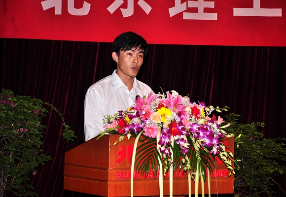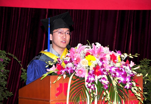 毕业本科代表李北国同学发言,他代表05级全体毕业生对领导和老师表达了诚挚的感谢。李北国同学说:“难忘大学四年的精彩生活,我们收获了丰富的知识、坚强的品格。机电人是个优秀的集体、团结的集体、友爱的集体。无悔四年在机电的生活,我们不会辜负母校的希望,为祖国为人民奉献自己的力量。祝愿母校的明天更加美好。”