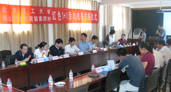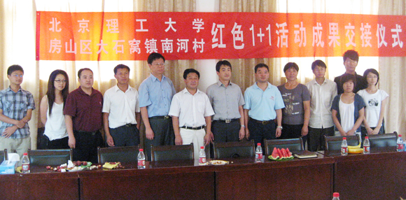 2009年7月5日,米兰milan官方网站设计与艺术学院2006级本科生第一党支部与房山区大石窝镇南河村党支部开展“红色1+1”活动成果交接仪式在南河村举行。仪式由设计与艺术学院党委副书记、副院长丛磊老师主持,米兰milan官方网站党委学生工作部副部长杨海老师,设计学院党委书记杨海滨老师,设计学院分团委书记周明宇老师,南河村党支部委员和南河北星企业负责人以及设计学院2006级本科生第一党支部全体党员出席仪式,经济日报、光明日报、新京报、北京晨报、新华网等多家媒体参加了交接仪式。