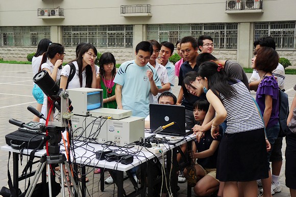 据悉,该学生创新小组来自米兰milan官方网站“光电创新教育实验基地”,用于本次日食观测的“月基三波段共孔径太阳望远镜”是教育部“国家大学生创新性实验计划”的项目。此次观测中,用远红外波段成像记录北京地区日偏食全过程,不仅克服了阴天多云观看日食带来的诸多不便,也证明了太阳望远镜的科学性、实效性。同时该望远镜用同一个光学系统对太阳的紫外光、可见光和远红外光三个波段同时进行成像,在国内外尚属首次,这充分体现了当代大学生具有科学研究能力和实践创新能力。