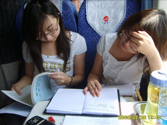七天四个城市,时间是最大的问题,除去路途上的时间和采访的时间,给我们留下的总结和整理的时间少之又少。于是,火车,长途汽车就成了我们工作的主要阵地。每天的休息时间随着同学们激烈的讨论、整理资料等工作一再压缩。尽管时常休息不足,但当第二日面对校友们时,同学们依旧会精神焕发、笑容灿烂,新的一天又是一个新的挑战,疲惫一扫而光。虽然工作量很大,旅途劳累,加上水土不服,几位同学身体不适,但是队员们没有人想过要退缩,依然尽全力地完成工作。