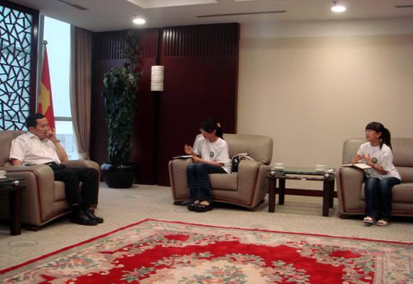 中国普天信息产业公司副总裁王中夫校友与实践团成员亲切交谈