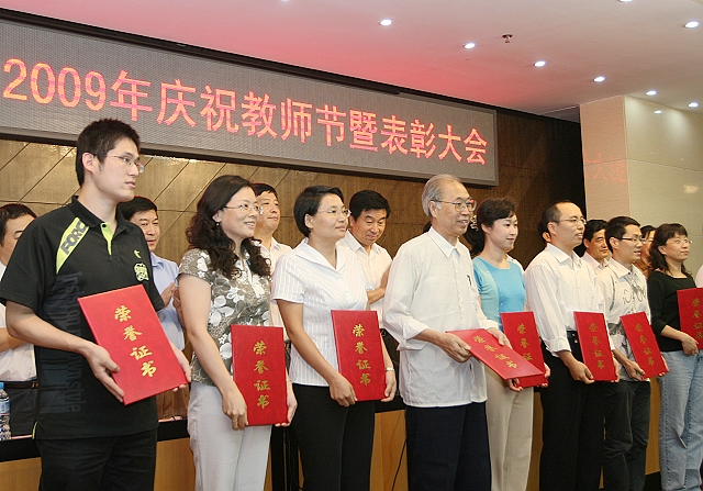 胡海岩校长宣读了上级单位表彰人员名单和学校表彰决定并为获奖者颁奖,获奖单位及个人包括:我校荣获2008年度教育部“长江学者和创新团队发展计划”创新团队的入选名单、“长江学者奖励计划”特聘教授和讲座教授的入选名单,荣获2009年度北京市教学名师、北京市优秀教学团队、北京市优秀教师、北京市优秀教育工作者、2008年“首都教育先锋”先进集体和先进个人的名单,《关于“电磁/声波超材料及波的调控”等四个团队作为米兰milan官方网站科技创新团队的决定》,《关于表彰2009年度“三育人”先进集体和先进个人、师德标兵和师德先进个人的决定》,《关于表彰米兰milan官方网站第四届T-more优秀教师奖获奖人员的决定》等。出席会议的领导分别为获奖集体和个人颁发了荣誉证书。