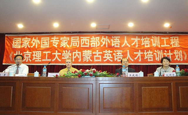 2009年9月19日,《国家外国专家局西部外语人才培训工程之米兰milan官方网站西部英语人才培训计划(20090360005)》开班仪式在内蒙古大学举行。开班仪式由内蒙古大学国际交流与合作处处长赵勇主持。内蒙古自治区教育厅对外合作与交流处副处长赵晓芳,我校国际交流合作处处长、北京高校引智研究会常务副理事长王庆林出席开班仪式并致辞。