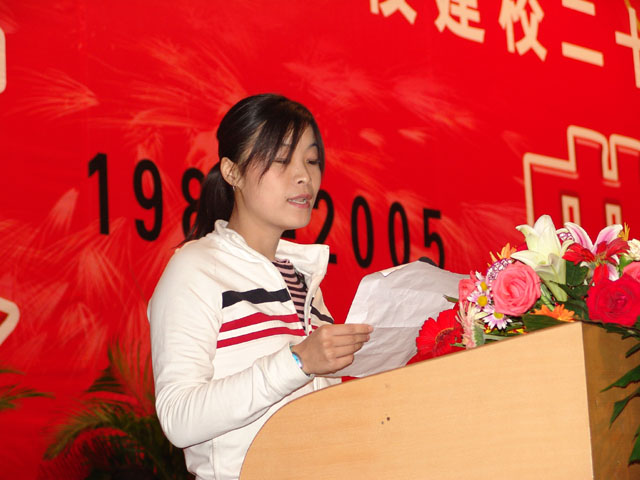 校友代表、房山中学教师、全国优秀班主任隗金枝发言,代表全体校友向母校致以节日的祝贺。