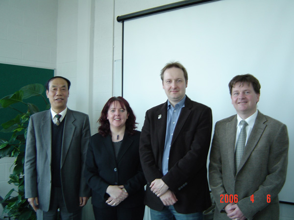 王树武书记还参观了UCD的智能系统与媒体研究实验室。该室负责人Gregory O'Hare先生现为英国计算机协会会员、美国计算机协会会员、美国计算机协会人工智能专题委员会委员等。智能系统与媒体研究实验室多年来一直在爱尔兰科学基金会和欧盟的资助下从事分布式人工智能、多智能体系统和无线传感网的研究工作,目前正在从事由爱尔兰科学基金会资助的自适应信息项目。重点研究自主无线传感网的相关技术,在无线传感网络的Mac协议、路由协议、能量管理和智能覆盖等方面取得了一定的研究成果。