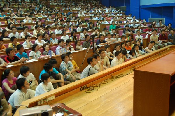 共有约700名同学来到报告厅聆听孙大使的讲座,而中心教学楼一层报告厅只有500个座位,很多同学提前3个小时就早早来到会场等候,迟来的同学纷纷在过道和台阶上坐着听讲,还有部分同学一直站着听完了讲座。尽管来听讲座的同学人数众多,但是讲座结束后,同学们纷纷将身边的垃圾全部带走,偌大的中教报告厅内整洁如初,这种现象在我校大型学生活动中较为罕见。