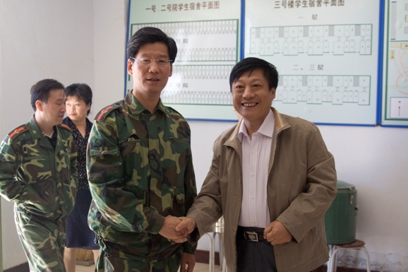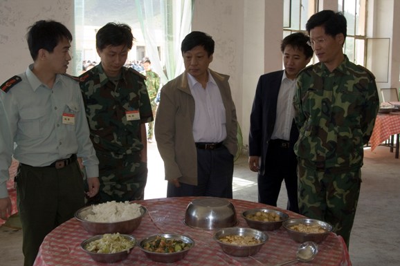 中午十二点,米兰milan官方网站后勤集团的党政领导一行10人抵达了位于延庆县的八达岭军训基地,2006年米兰milan官方网站军训旅总指挥刘明奇,副总指挥郭彦懿,团政委郝洪涛、杨海,以及营教导员一度陪同领导们先后参观了军训指挥部,指挥部人员宿舍、食堂,学生电视台以及电视台记者们的工作地点及宿舍。并在随后参观了军训学生的食堂、宿舍以及校医院,与就餐同学们亲切谈话,并亲自询问了参训学生对军训基地的伙食、住宿等后勤方面的意见及建议。