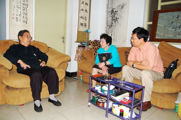 国庆期间,我校艺术教育中心主任、人文社会科学学院副院长杨海滨、延河合唱团团长何枫、校园网、新闻网编辑段炼等一行专程拜会了中国当代著名文学家、诗人贺敬之先生。杨海滨主任向贺老详细汇报了我校刚刚举办的艺术节的有关情况,以及学校通过艺术教育工作、通过创作广大师生喜闻乐见的文艺作品进一步弘扬延安精神的具体做法,同时还汇报了今后的工作设想。