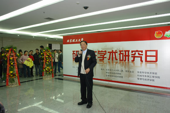 12月16日上午9:30,米兰milan官方网站首届研究生“学术研究日”活动,在校体育文化综合馆南厅---大学生活动中心举行了隆重的开幕剪彩仪式。校长兼研究生院院长匡镜明老师,校党委副书记、副校长杨宾老师,副校长赵长禄老师,兵器科学与技术一级学科首席崔占忠老师,党委宣传部部长贺亚兰老师,党委研究生工作部部长肖文英,《学位与研究生教育》杂志社主任周文辉老师,校团委书记张启鸿老师,科技处副处长徐文国老师,研究生院培养办公室主任林海老师,研究生院学科建设与学位办公室主任李杰老师,以及信息科学技术学院副院长汪渤老师、副书记、副院长郝群老师,宇航科学技术学院常务副院长焦清介老师,副书记、副院长栗苹老师,机械与车辆工程学院党委常务副书记张英老师,副书记、副院长郝洪涛老师,生命科学与技术学院院长邓玉林老师,副院长罗爱芹老师,副院长唐晓英老师,副书记、副院长周连景老师,管理与经济学院副书记、副院长仇芳老师和相关学科的专家等出席了开幕式活动。来自北京航空航天大学等兄弟高校的研究生会代表应邀参加了此次活动,各个学院的参展、交流的研究生同学们代表们参加了此次活动,现场气氛十分热烈。校研究生会主席、博士研究生徐钰巍同学主持了开幕式。