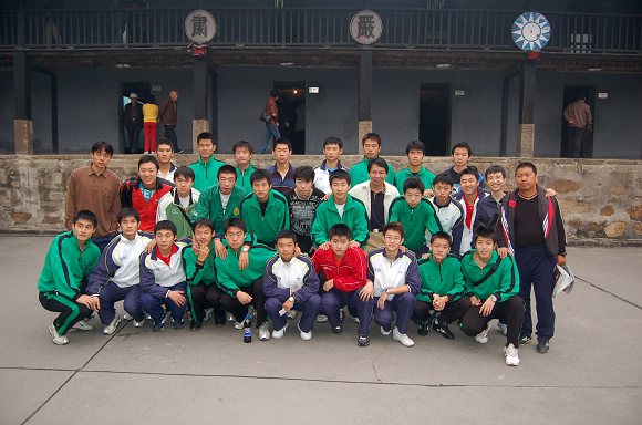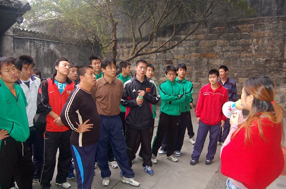 11月3日,刚刚夺取了2006年全国足球乙级联赛冠军并胜利冲甲的我校足球队,在返京之前,来到了重庆市郊著名的爱国主义教育基地“渣滓洞、白公馆”进行参观和教育活动。