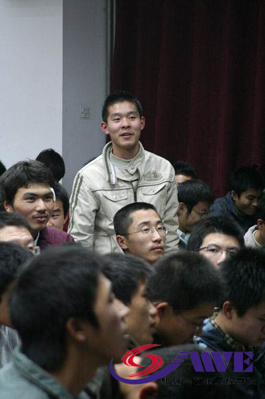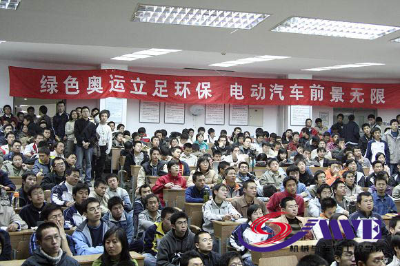孙校长讲座的气氛十分活跃,在场的同学和老师也都聆听的格外认真,有时孙教授的一句风趣的话语,就能博得在场观众阵阵掌声……座位坐不下了,大家就站在过道里面听,虽然腿站酸了,脚站麻了,但是同学们对于电动汽车有着浓厚的兴趣,对于2008年的奥运会有着火一般的热情!