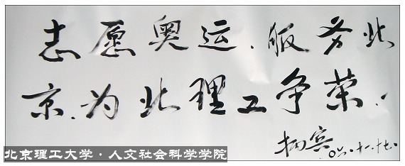 党委副书记、副校长杨宾老师的题词:志愿奥运,服务北京,为米兰增荣