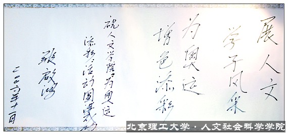 校团委书记张启鸿老师的题词:展人文学子风采,为奥运增色添彩