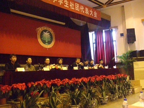 校党委副书记赵平老师在代表学校党委向大会的召开致以良好祝愿的同时,还对“大学为什么要有社团”发表了自己的看法:学生社团的建设是要与学校人才培养的目标相一致,与和谐校园的建设相一致。他指出学生社团在对社会人才的培养中发挥着重要作用,是校园文化建设的重要力量;是素质教育的重要载体;是青年学生成长的重要平台。为大学教育开设第二课堂,社团活动是必不可少的组成部分。社团成立的目的就是要培养、锻炼与考察学生的能力,并与今后的社会定位联系起来,使他们在进入社会的时候,能够更早的、更容易的适应环境,独立生存。同时,加入学生社团也可以培养自身的责任感和领导艺术,这对于学生将来的发展是非常重要的。最后,他对我校学生社团的发展提出了一些希望:在学校建设“国内一流、国际知名”高水平研究型大学的过程中,我们也应该打造出一批高水平的精品社团,使其影响力不仅仅在校内、国内,更应该走出国门。