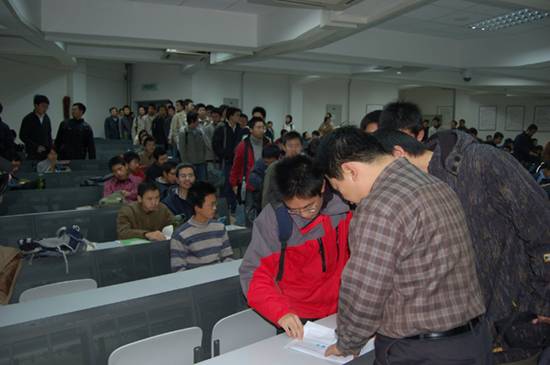 11月30日上午8点,学校党委书记焦文俊、校长匡镜明、常务副校长李志祥、副书记赵平、副校长杨树兴以及学生处、教务处、招生就业处、研工部、校团委、组织部、统战部、纪检监察室、机关党委、人事处、实验设备处等职能部门工作人员和部分党员研究生近100人分头检查了85个大一、大二、大三学生上课教室课堂出勤情况,涉及学生总计7497人。