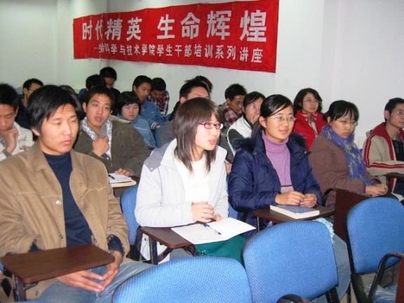 丁伯成秘书长首先就目前北京市的奥运筹备情况为大家作了介绍,内容主要涉及到奥运场馆建设,志愿者招募情况和奥运筹备的一些最新进展,特别介绍了奥组委的工作运行机制和他所负责的北区各场馆的准备情况,特别是他在雅典奥运会的实习工作经历,更是引起了同学们极大的兴趣。