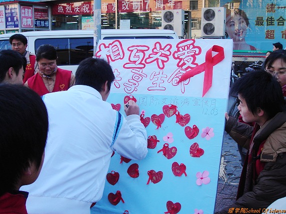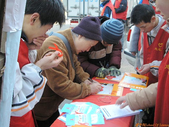“世界艾滋病日”作宣传的理学院青年志愿者