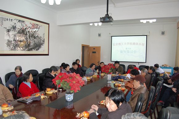 侯光明副书记发言时首先代表学校向抗癌俱乐部全体会员和教师表示新年的问候,并对大家的这种其乐融融气氛所感动,虽然目前癌症在医学界还是个很大的难题,但如何面对它,如何以乐观的精神对待它,俱乐部的诸位老师做出了很好的榜样,今后学校还将加大对全校教职员工的健康普查和医疗投入,希望大家都能早日康复,也欢迎大家一如既往地继续关心学校的各项工作与发展。