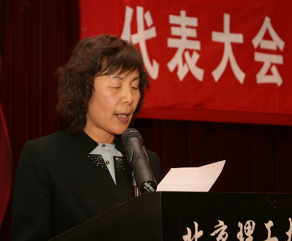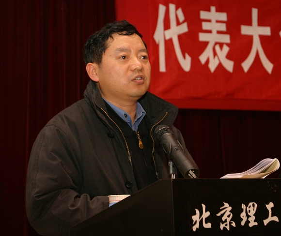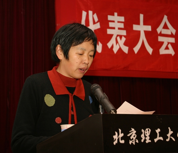 机械与车辆学院工会代表在大会上发言。