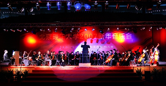 2006年12月30日晚,我校在体育文化馆举行了2007年新年音乐会。音乐会由校艺术教育委员会主办,校团委和艺教中心、校工会承办。校长匡镜明,校党委副书记、副校长杨宾,副书记侯光明、赵平,副书记、纪委书记张维维,副校长李和章、中国工程院院士毛二可、周立伟以及校有关单位负责人和师生共同观看了演出。