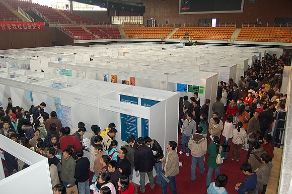 我校毕业生约4000人参加了招聘会。从现场情况来看,毕业生求职积极性很高,期望值有所下降,但焦点仍然集中在北京单位,即便是不能解决户口的单位也会受到毕业生青睐。外地单位出现了两极分化情况,地处上海、西安、武汉等中心城市的一些大的国企摊位前人潮涌动,而地处内蒙、广西、贵州等中西部地区的单位则门前冷落,而能够解决户口的北京单位和效益不错的外地单位用人门槛普遍较高,一般要求学习成绩优秀、硕士研究生及以上学历、专业对口、具备英语四级及以上水平等资格,各种层次毕业生就业难度都在加大。