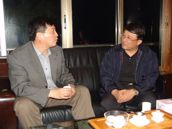 厦门大学党委书记朱之文(右)介绍厦大的改革发展形势并与侯书记等深入交换意见。