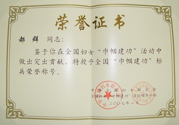 【图】我校信息学院郝群教授荣获全国“巾帼建功”标兵荣誉称号