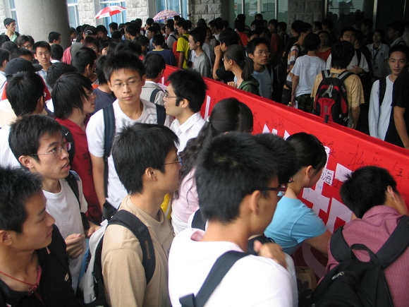 开幕式之前,数千名学生在写有“迎奥运,交通安全从我做起”的横幅上签字,在表达对奥运会的期盼的同时,也许下了大学生的承诺。