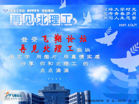 “也许我也应该试着爱我的母校吧?将它的辉煌与失落一并接收,包容它的好的、不好的所有,在心里柔软的田地里种上一个叫BIT的种子,看着它发芽,生长,开花,结果。等它长大了我们会惊喜地发现在我们寂寞、彷徨、无助的时候,心中又多了一块休憩,疗养的地方。”