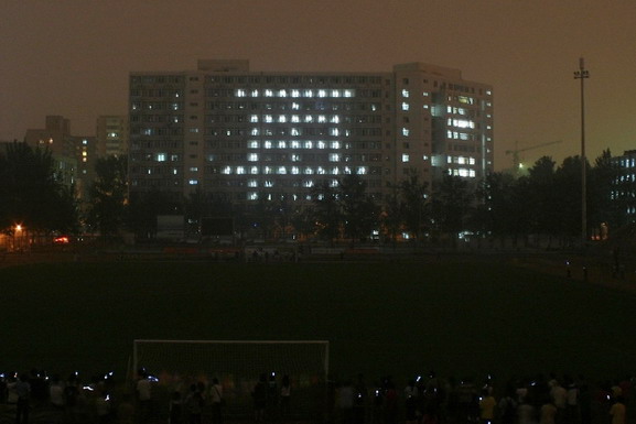 2007年6月1日晚22:00新1号学生公寓的北侧,一组由208个宿舍的灯光组成的图案展现在了人们眼前,在不到15分钟的时间里,新一号学生公寓的灯光连续变换了五次,通过不同宿舍灯光的一开一关,分别组成了五个字“再见米兰”。